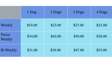 Our pricing is shown as weekly or bi-weekly, but to keep things simple, we bill monthly.