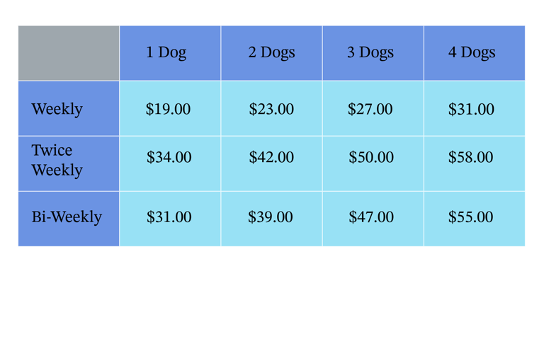 If youâre happy with the service, you can move into one of our weekly, bi-weekly, or twice-weekly plans. We'll help you pick a service schedule and lock in a regular cleanup day that works for both of us.